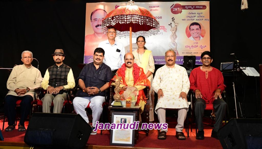 Kalangann stood witness to a Dual Celebration on November 2nd – The 21st Kalakar Puraskar and the 287th Monthly Theatre. Srinivasa Rao S., famously known as Kasaragod Chinna, who brought prestige to the Konkani Theatre and also won awards for his work in literature and cinema, was presented with the 21st Kalakar Puraskar. Mangalore South MLA D. Vedavyas Kamath handed over the Kalakar Puraskar, which is jointly given by the Carvalho Household and Mandd Sobhann. The award includes a shawl, a garland, fruits, a memento and ₹50,000.
