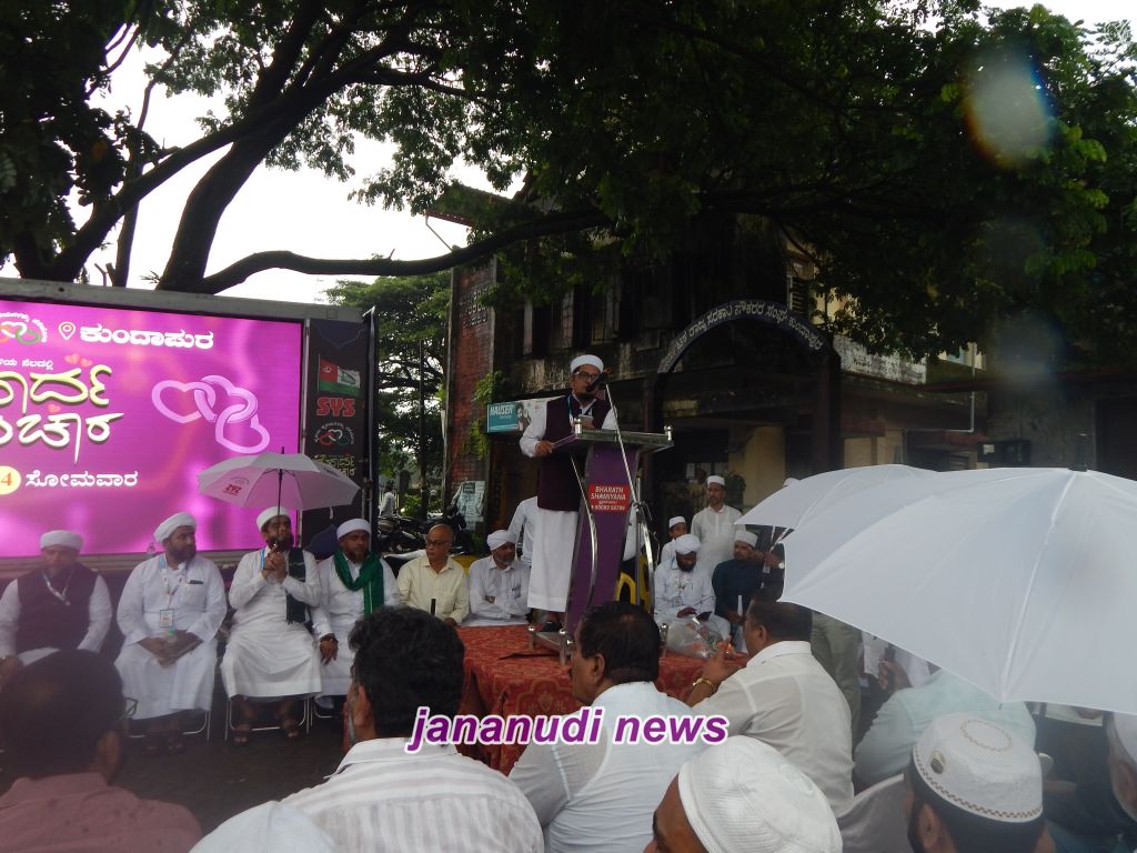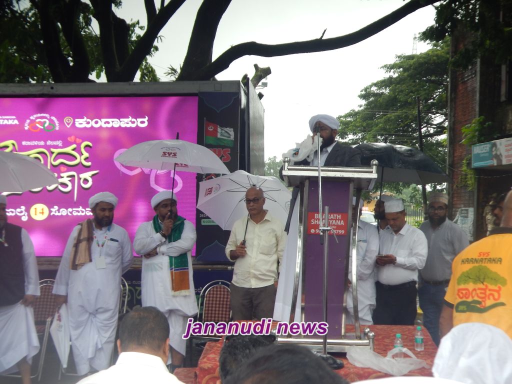 ಸಭಾ ಕಾರ್ಯಕ್ರಮದಲ್ಲಿ ಕರ್ನಾಟಕ ವಕ್ಫ್ ಕೌನ್ಸಿಲ್ ಉಪಾಧ್ಯಕ್ಷ ಮೌಲಾನಾ ಶಾಫಿ ಸಹಾಧಿ ಮಾತನಾಡಿ “ಪವಿತ್ರ ಕುರಾನ್ ಹಿಂಸೆಯನ್ನು ಆರಾಧಿಸುವುದಿಲ್ಲ. ಪೈಗಂಬರ್ ಜೀವನ ಚರಿತ್ರೆಯನ್ನು ಸರಿಯಾಗಿ ಅಧ್ಯಯನ ಮಾಡಿದ ಯಾವ ವ್ಯಕ್ತಿಯೂ ಧರ್ಮದ್ವೇಷ ಮಾಡಲು ಸಾಧ್ಯವಿಲ್ಲ. ಜಗತ್ತಿನ ಯಾವ ಧರ್ಮವೂ ಇನ್ನೊಂದು ಧರ್ಮವನ್ನು ಪ್ರೀತಿಸು ಎನ್ನುತ್ತದೆಯೇ ಹೊರತು ದ್ವೇಷಿಸಲು ಉಪದೇಶಿಸುವುದಿಲ್ಲ. ಎಲ್ಲಾ ಧರ್ಮದ ಸಾರ ಶಾಂತಿ ಸಾರುವುದೇ ಆಗಿದೆ,” ಎಂದು ತಿಳಿಸಿದರು.