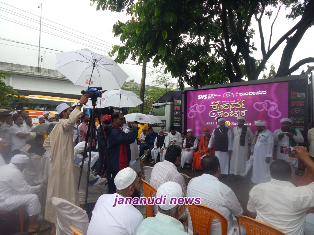 ಕುಂದಾಪುರ: ಕರಾವಳಿಯಲ್ಲಿ ಕೋಮು ಸೌಹಾರ್ದತೆ ಶಾಂತಿಗಾಗಿ ಸುನ್ನೀ ಯುವಜನ ಸಂಘದಿಂದ ಕುಂದಾಪುರದಲ್ಲಿ ಸೌಹಾರ್ದ ಸಂಚಾರ ಆರಂಭವಾಯಿತು. ಇದಕ್ಕೆ ಕುಂದಾಪುರ ಜಾಮೀಯ ಮಜೀದಿಯ ಆವರಣದಲ್ಲಿ ಶ್ವೇತ ವರ್ಣದ ಕೊಡೆಗಳನ್ನು ನೀಡುವ ಮುಖಾಂತರ ಚಾಲನೆ ನೀಡಲಾಯಿತು. ಅಲ್ಲಿಂದ ಸೌಹಾರ್ದ ಸಂಚಾರ ಆರಂಭವಾಗಿ ಕಾಲ್ನಡೆಗೆಯಲ್ಲಿ ಕುಂದಾಪುರ ನಗರ ಮುಖಾಂತರ ಶಾಸ್ತ್ರಿ ಸರ್ಕಲ್ನಲ್ಲಿ ಸಭಾ ಕಾರ್ಯಕ್ರಮ ನಡೆಯಿತು.