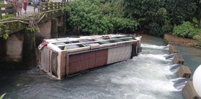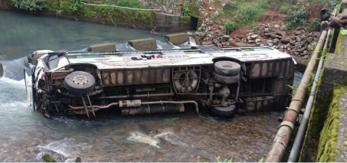 ಸೇತುವೆಯಿಂದ ಹಳ್ಳಕ್ಕೆ ಅಡ್ಡಲಾಗಿ ಬಿದ್ದ ಬಸ್ : ಅಂಕೋಲಾ ತಾಲೂಕಿನ ರಾಷ್ಟ್ರೀಯ ಹೆದ್ದಾರಿ 63ರ ಅಗಸೂರು ಬಳಿ ಖಾಸಗಿ ಸ್ಲೀಪರ್ ಬಸ್ ಚಾಲಕನ ನಿಯಂತ್ರಣ ತಪ್ಪಿ, ಸೇತುವೆಯಿಂದ ಹಳ್ಳಕ್ಕೆ ಅಡ್ಡಲಾಗಿ ಬಿದ್ದಿದೆ. ಬಸ್ನಲ್ಲಿದ್ದ 18 ಮಂದಿ ಪ್ರಯಾಣಿಕರ ಪೈಕಿ ಓರ್ವ ಮೃತಪಟ್ಟಿದ್ದು, ಐವರಿಗೆ ಗಂಭೀರ ಗಾಯಗಳಾಗಿದೆ. ಗಾಯಾಳುಗಳಿಗೆ ಅಂಕೋಲಾ ತಾಲೂಕು ಆಸ್ಪತ್ರೆಯಲ್ಲಿ ಚಿಕಿತ್ಸೆ ನೀಡಿದ್ದು, ಗಂಭೀರವಾಗಿ ಗಾಯಗೊಂಡವರನ್ನು ಮಂಗಳೂರು ಆಸ್ಪತ್ರೆಗೆ ರವಾನಿಸಲಾಗಿದೆ ಎಂದು ಪೊಲೀಸರು ತಿಳಿಸಿದ್ದಾರೆ.