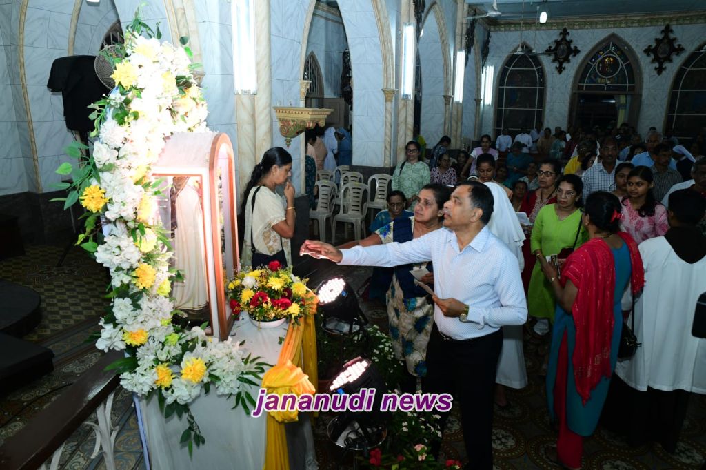 The Triduum was observed on September 28, 29, and 30, preparing the faithful for the feast. On the feast day, October 1, the Eucharistic Adoration was prayerfully led by Fr. Ligoury Crasta from 4:15 to 5:15 p.m., creating a deeply spiritual atmosphere before the Solemn Eucharistic Celebration.