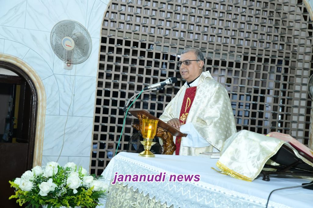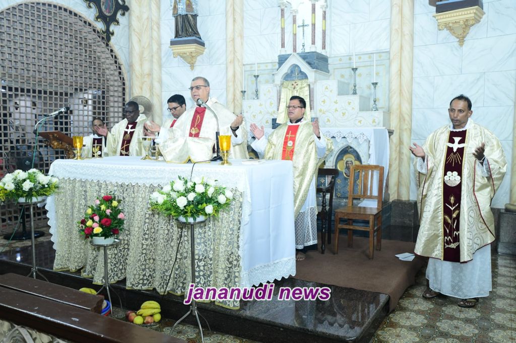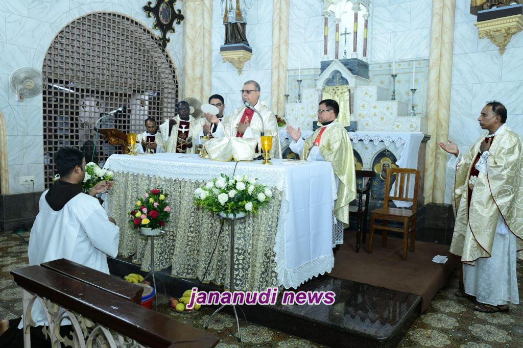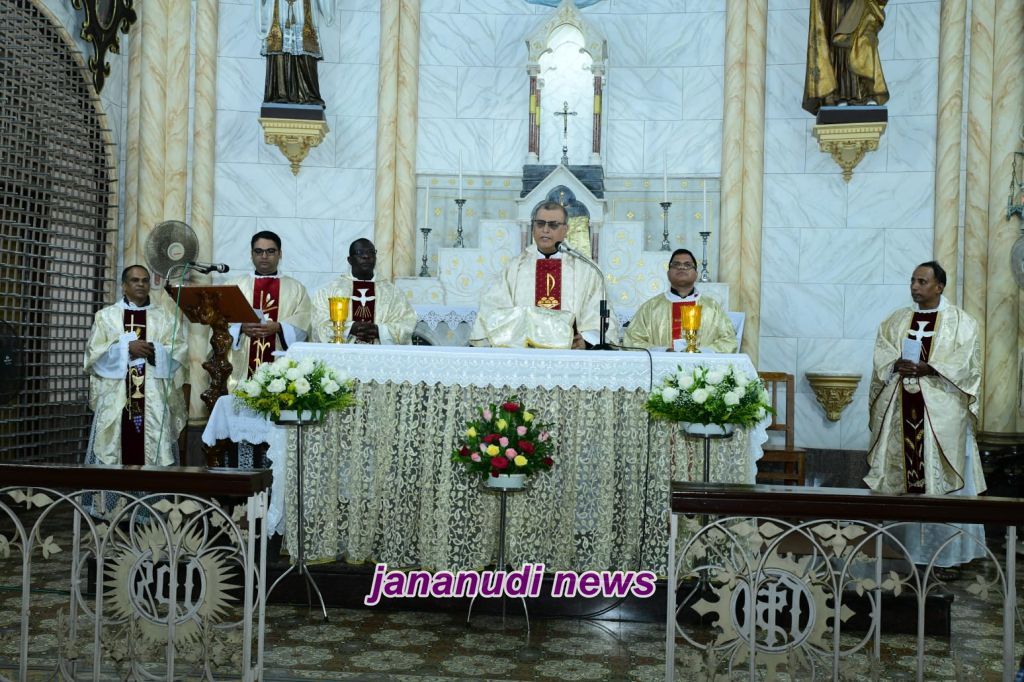 ಗಂಭೀರವಾದ ಯೂಕರಿಸ್ಟ್ ಅನ್ನು ಫಾದರ್ ಫಿಲ್ಬರ್ಟ್, ಫಾದರ್ ವಿನೋದ್, ಫಾದರ್ ರಿಚರ್ಡ್, ಫಾದರ್ ರತನ್, ಫಾದರ್ ಲಿಗೌರಿ, ಫಾದರ್ ಗ್ರೆಗೊರಿ ಮತ್ತು ಫಾದರ್ ಬರೋಚಸ್ ಅವರು ಒಟ್ಟಾಗಿ ಆಚರಿಸಿದರು, ಇದು ಈ ಸಂದರ್ಭದ ಅನುಗ್ರಹ ಮತ್ತು ಗಾಂಭೀರ್ಯಕ್ಕೆ ಕಾರಣವಾಯಿತು. ಸಂಗಡಿಗರ ಉಪಸ್ಥಿತಿ ಮತ್ತು ಭಕ್ತರ ಭಾಗವಹಿಸುವಿಕೆಯು ಆಚರಣೆಯನ್ನು ಕೃತಜ್ಞತಾಸ್ತುತಿ ಮತ್ತು ನಂಬಿಕೆಯ ನವೀಕರಣದ ಕ್ಷಣವನ್ನಾಗಿ ಮಾಡಿತು.