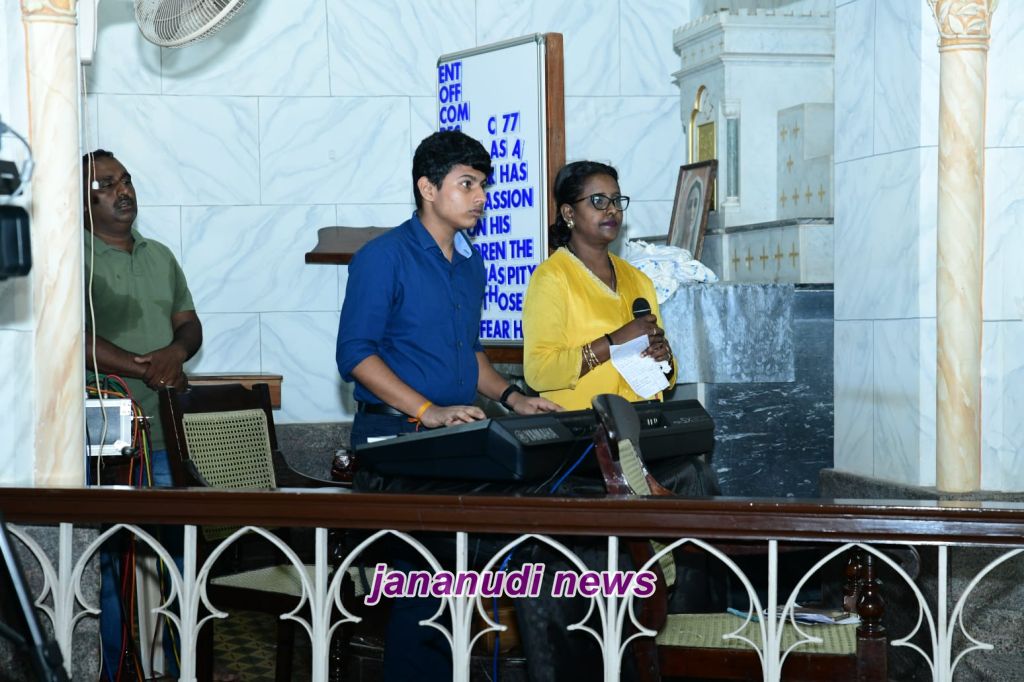 The Solemn Eucharist was co-celebrated by Fr. Philbert, Fr. Vinod, Fr. Richard, Fr. Ratan, Fr. Ligoury, Fr. Gregory, and Fr. Barochas, adding to the grace and solemnity of the occasion. The presence of the concelebrants and the participation of the faithful made the celebration a moment of thanksgiving and renewal of faith.