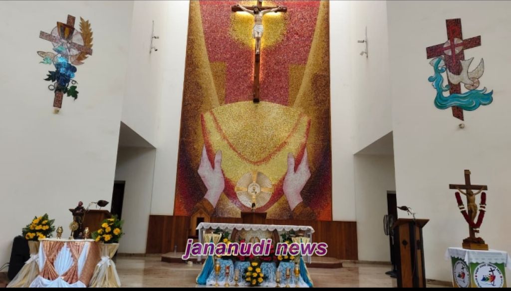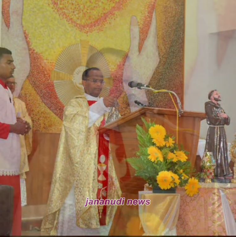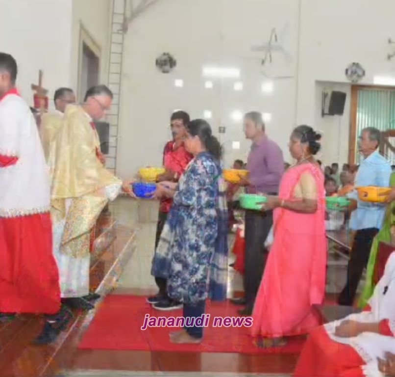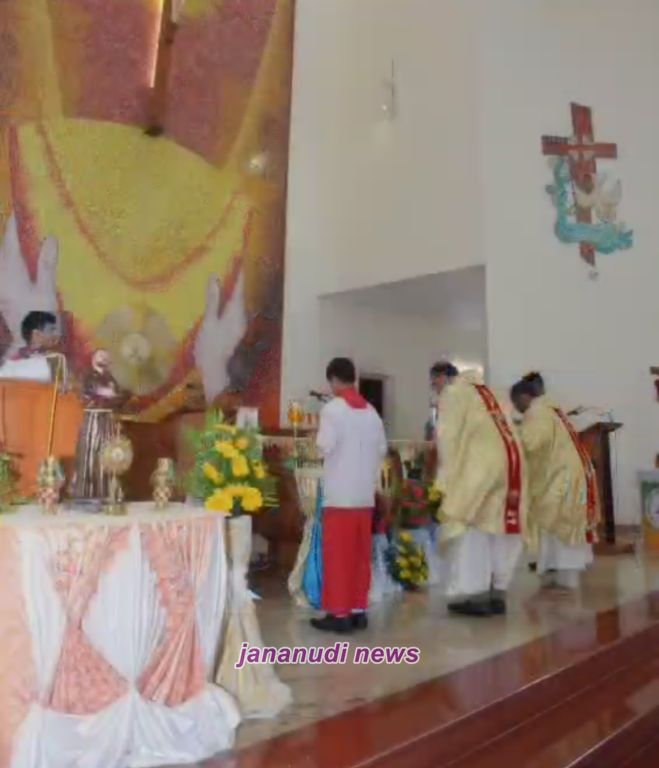 The solemn Holy Eucharistic celebration began at 4:30 p.m., officiated by Rev. Fr. Denis D’sa, PRO of the Udupi Diocese and Director of the Social Media Commission, who is also the parish priest of Thottam Church. Rev. Fr. Edwin D’Souza, the parish priest of Tallur, concelebrated the Mass.