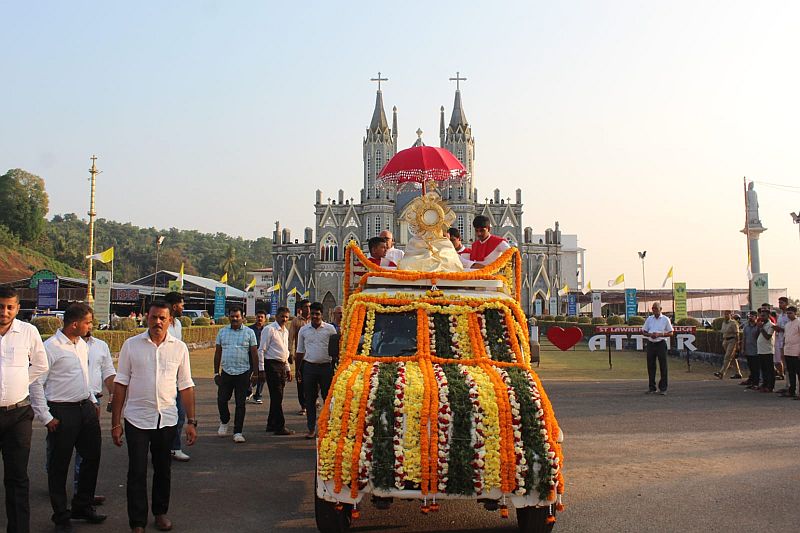 ಪವಿತ್ರ ಬಲಿಪೂಜೆಯ ನ೦ತರ ಭಕ್ತಿಭರಿತ ದಿವ್ಯ ಪರಮ ಪ್ರಸಾದದ ಮೆರವಣಿಗೆ ನಡೆಯಿತು. ಪವಿತ್ರ