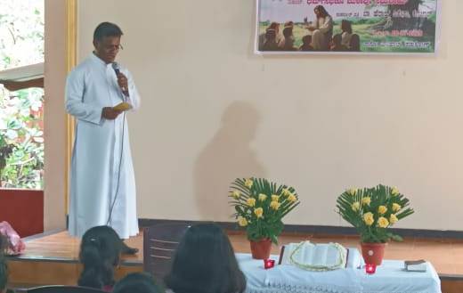 ಮಿಶಿನರಿ ಸಂಘದ ಮಕ್ಕಳಿಗೆ “ಧರ್ಮ ಸಭೆಯ ಮೂಲ ಸಮುದಾಯ” ಎಂಬ ಒಂದು ದಿನದ ತರಬೇತಿಯನ್ನು ದಿನಾಂಕ 6.7.2025 ರಂದು ಎಂಬ ಒಂದು ದಿನದ ತರಬೇತಿಯನ್ನು ಶಿಬಿರವನ್ನು ನಡೆಸಲಾಯಿತು ಸಂಪನ್ಮೂಲ ವ್ಯಕ್ತಿಯಾಗಿ ಕಿರು ಸಮುದಾಯ ಆಯೋಗದ ನಿರ್ದೇಶಕರಾದ ವಂ। ಧರ್ಮಗುರು ಫಾದರ್ ಹೆರಾಲ್ಡ್ ಪಿರೇರಾ ಆಗಮಿಸಿದ ಅವರು ‘ಪ್ರಪಥಮವಾಗಿ ಪವಿತ್ರ ಬೈಬಲ್ ಮೇಲೆ ಪ್ರೀತಿ,ವಿಶ್ವಾಸ್,ಗೌರವ ಯಾವ ರೀತಿ ನೀಡಬೇಕು, ಪ್ರತಿಯೊಬ್ಬ ಮಕ್ಕಳಿಗೂ ಪವಿತ್ರ ಬೈಬಲ್ ಪುಸ್ತಕವನ್ನು ಎರಡು ಕೈಗಳಿಂದ ಮುಟ್ಟಿ ನಮಿಸಿ ಗೌರವಿಸುವ ರೀತಿಯನ್ನು ನಡೆಸಿಕೊಟ್ಟರು. “ಶುಭ ವಾರ್ತೆಯ” ಎಳು ಮಜಲುಗಳ ವಿಧಾನವನ್ನು ಮಕ್ಕಳ ಮನಸ್ಸಿಗೆ ಮನದಟ್ಟುವಂತೆ ಸಂಗೀತ,ನಟನೆಯ ಮೂಲಕ ತಿಳಿಸಿದರು. ಗುಂಪುಗಳನ್ನು ಮಾಡಿ ಮಕ್ಕಳಿಗೆ ಏಳು ಹಂತ ಗಳನ್ನು ಸಮುದಾಯದಲ್ಲಿ ಭಾಗವಹಿಸಿ ಕಾರ್ಯ ರೂಪಕ್ಕೆ ತರುವಂತೆ ಮಾಡಲು ಫೋತ್ಸಾಹಿಸಿದರು. 5ನೇತರಗತಿಯಿಂದ 10ನೇ ತರಗತಿಯವರೆಗಿನ 60 ಮಕ್ಕಳು ಮೂವರು ಕ್ರೈಸ್ತ ಶಿಕ್ಷಣದ ಶಿಕ್ಷಕರು ಹಾಜರಿದ್ದರು. ಚರ್ಚಿನ ಧರ್ಮಗುರು ವಂ। ಫ್ರಾನ್ಸಿಸ್ ಕರ್ನೆಲಿಯೋ ಪ್ರಸ್ತಾವಿಕ ಮಾತುಗಳನ್ನಾಡಿ ಸ್ವಾಗತಿಸಿದರು. ಮಿಶಿನರಿ ಮಕ್ಕಳ ಸಂಘದ ಶಿಕ್ಷಕಿ ಶೀಮತಿ ಡೇರಿ ಸುವಾರಿಸ್ ಧನ್ಯವಾದ ನೀಡಿದರು.
