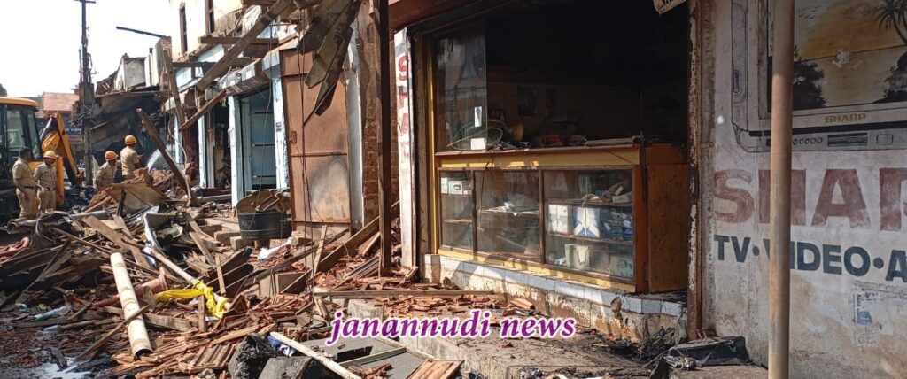 ಕುಂದಾಪುರ ರಥಬೀದಿಯಲ್ಲಿ ನಡೆದ ಬೆಂಕಿ ದುರಂತ- ಸುಟ್ಟು ಕರಕಲಾದ ರಾಶಿಯನ್ನು ತೆರವುಗೊಳಿಸುವ ಕಾರ್ಯಚರಣೆ