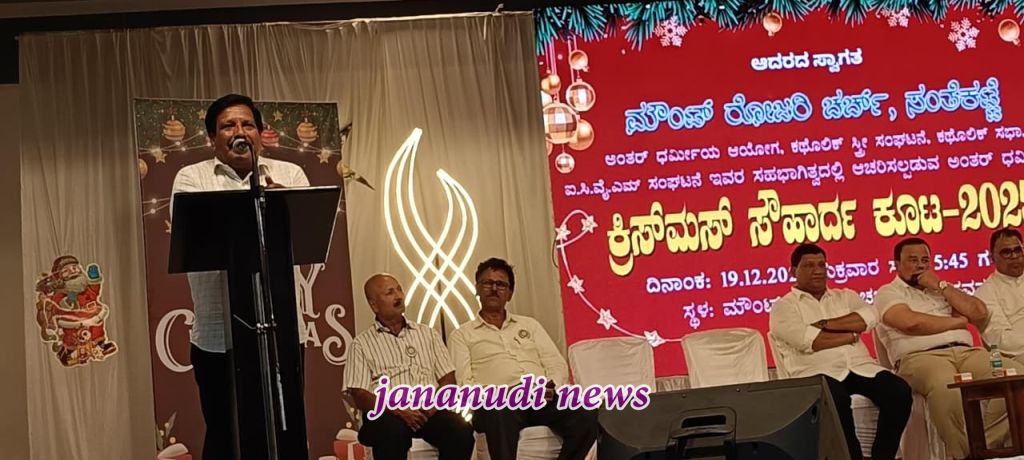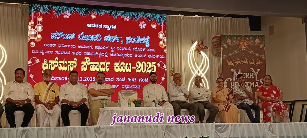 ಕಲ್ಯಾಣಪುರ; ಸಂತೆಕಟ್ಟೆ ಮೌಂಟ್ ರೋಸರಿ ಮಿಲೇನಿಯಂ ಆಡಿಟೋರಿಯಂ, ಡಿಸೆಂಬರ್ 18, 2025 ರ ಸಂಜೆ ಸೌಹಾರ್ದ ಕೂಟ ಎಂದು ಜನಪ್ರಿಯವಾಗಿ ಕರೆಯಲ್ಪಡುವ ಅರ್ಥಪೂರ್ಣ ಅಂತರ-ಧಾರ್ಮಿಕ ಕ್ರಿಸ್ಮಸ್ ಆಚರಣೆ – 2025 ಅನ್ನು ಆಯೋಜಿಸುವ ಮೂಲಕ ಹಬ್ಬದ ಮತ್ತು ಸಾಮರಸ್ಯದ ನೋಟವನ್ನು ಹೊಂದಿತ್ತು. ಈ ಕಾರ್ಯಕ್ರಮವು ಸಮುದಾಯಗಳ ನಡುವಿನ ಏಕತೆ, ಶಾಂತಿ ಮತ್ತು ಪರಸ್ಪರ ಗೌರವಕ್ಕೆ ಒಂದು ಉಜ್ವಲ ಸಾಕ್ಷಿಯಾಗಿತ್ತು.