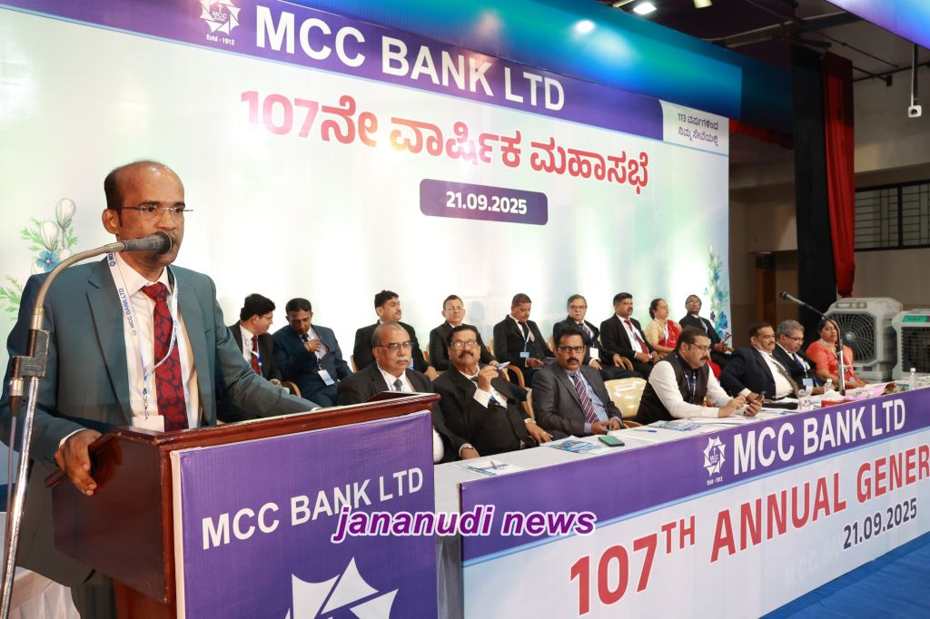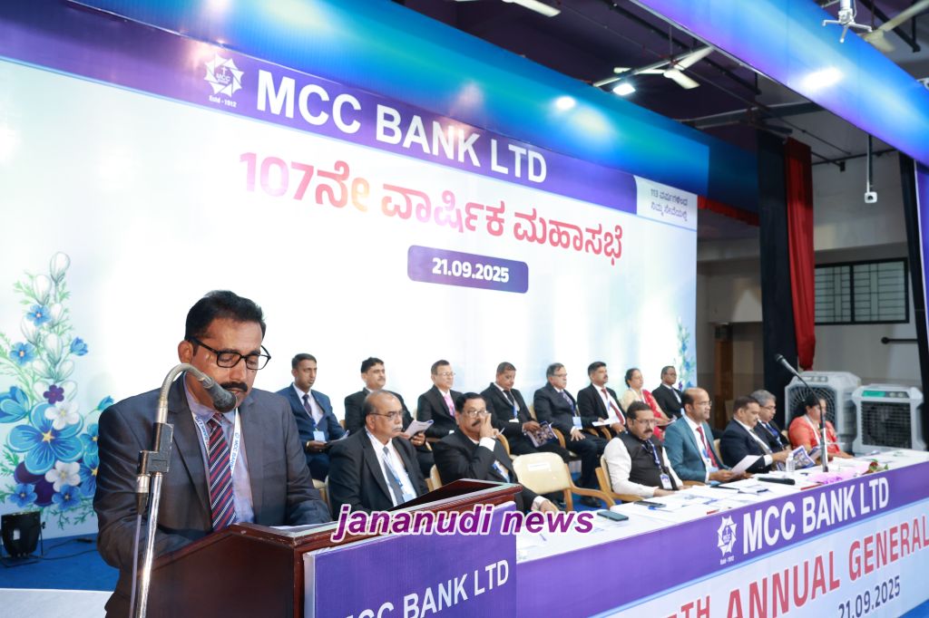 ಎಂ.ಸಿ.ಸಿ. ಬ್ಯಾಂಕಿನ 107ನೇ ವಾರ್ಷಿಕ ಸಾಮಾನ್ಯ ಸಭೆಯು ಸೆಪ್ಟೆಂಬರ್ 21, 2025 ರ ಭಾನುವಾರ ಬೆಳಿಗ್ಗೆ 11:00 ಗಂಟೆಗೆ ಮಂಗಳೂರಿನ ಕೊಡಿಯಾಲ್ಬೈಲ್ನ ಸೇಂಟ್ ಅಲೋಶಿಯಸ್ ಪಿ.ಯು. ಕಾಲೇಜಿನ ಲೊಯೊಲಾ ಹಾಲ್ನಲ್ಲಿ ನಡೆಸಲಾಯಿತು.