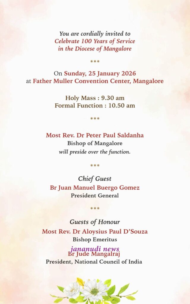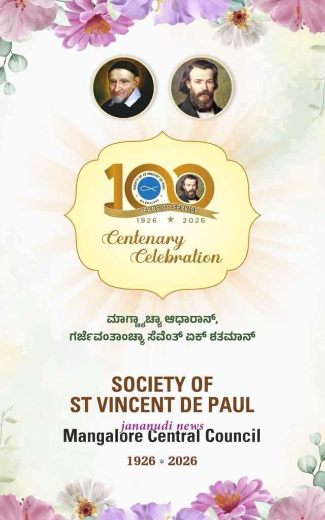 Mangalore;The St. Vincent De Paul Society (SVP), an international service organisation popularly known as SSVP, is celebrating 100 years of its presence in the Mangalore Catholic Diocese. The Centenary Valedictory Ceremony will be held on Sunday, 25 January 2026, at the Father Muller Convention Centre.