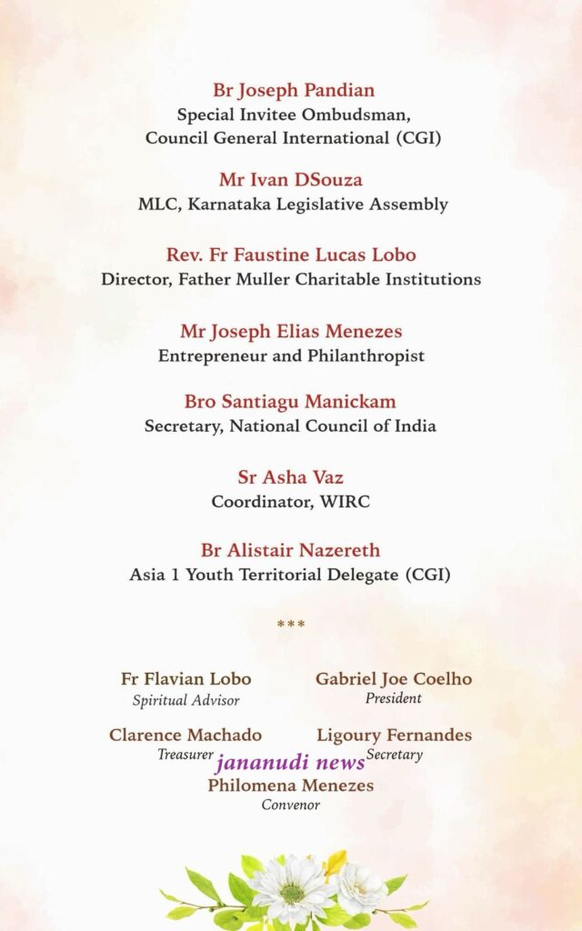 Members of the Karnataka Legislative Council Mr Ivan D’Souza, Director of Father Muller charitable Institutions Rev. Fr Faustine Lucas Lobo, and renowned Entrepreneur and Philanthropist Mr Joseph Elias Menezes will grace the occasion as Guests of Honour. Along with them, Mr Santiago Manickam, National Secretary of SSVP, Ms Asha Vaz, and youth representative Mr Alister Nazareth will be present on the dais.