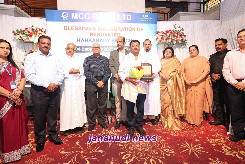 MCC Bank, Mangalore, inaugurated its newly renovated Kankanady Branch at the Emporium Commercial Complex, Kankanady Pumpwell Road, Mangalore on 4th December 2025. The refurbished premises were inaugurated by Mr Michael D’Souza, renowned NRI entrepreneur, philanthropist, and promoter of Vision Konkani (MDVK) while Rev Fr Faustine Lobo, Director of Fr Mullers Charitable Institutions, Kankanady, blessed premises.