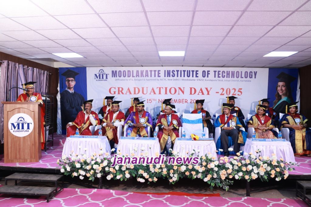 The 18th Convocation of Moodlakatte Institute of Technology (MITK) was held on 15th November 2025. Mr. Gopinath Rao, IEDS, retired Deputy Director of MSME (Government of India) and Co-founder of AMS India, was the Chief Guest. In his address, he highlighted government funding opportunities and encouraged graduates to aspire to become employers who create opportunities for others.