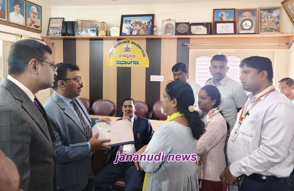 ತಾಲ್ಲೂಕಿನ ಜೆ. ತಿಮ್ಮಸಂದ್ರ, ಆರಿಕುಂಟೆ, ದಳಸನೂರು, ಮಾಸ್ತೇನಹಳ್ಳಿ ಗ್ರಾಮ ಪಂಚಾಯತಿಗಳಿಗೆ ಭೇಟಿ ನೀಡಿದರು. ಈ ಸಂದರ್ಭದಲ್ಲಿ, ಸರ್ಕಾರದ ಪ್ರಮುಖ ಯೋಜನೆಗಳಾದ ನರೇಗಾ ಅನುμÁ್ಠನ, ಕುಡಿಯುವ ನೀರು ಯೋಜನೆಗಳ ಪ್ರಗತಿ, ನೈರ್ಮಲ್ಯ ನಿರ್ವಹಣೆ ಮತ್ತು ಕಂದಾಯ ವಸೂಲಾತಿಗಳಿಗೆ ಸಂಬಂಧಿಸಿದ ಎಲ್ಲಾ ಕಡತಗಳನ್ನು ಕೂಲಂಕಷವಾಗಿ ಪರಿಶೀಲಿಸಿದರು.