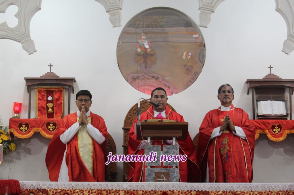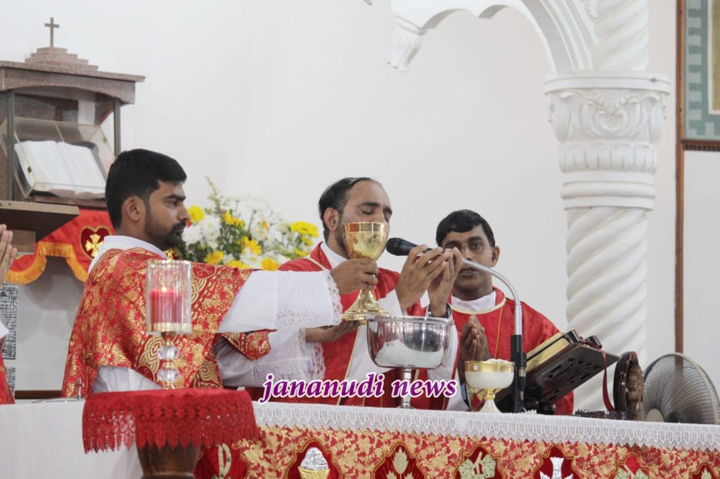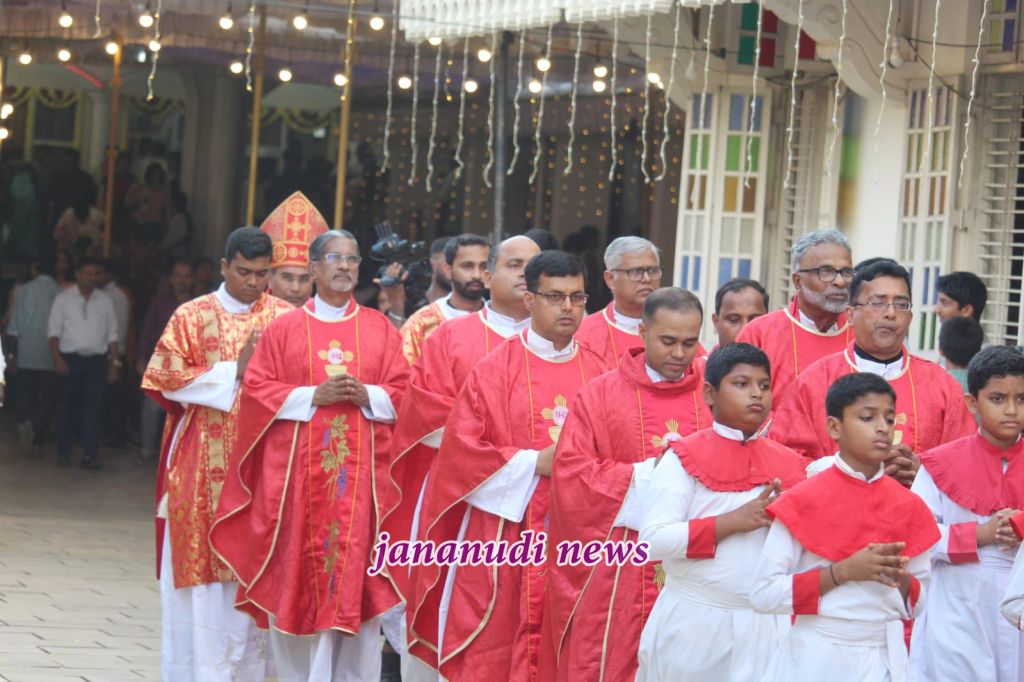 ಕಾರವಾರ ಧರ್ಮಪ್ರಾಂತ್ಯದ ಧರ್ಮಾಧ್ಯಕ್ಷ ಪರಮಪೂಜ್ಯ ಡಾ. ಡುಮಿಂಗ್ ಡಯಾಸ್ ಪ್ರಧಾನ ಗುರುಗಳಾಗಿ ನೆರವೇರಿಸಿದರು. ಅವರು ತಮ್ಮ ಪ್ರೇರಣಾದಾಯಕ ಪ್ರವಚನದಲ್ಲಿ “ದಿಲೆಕ್ಸಿತ್ ತೆ – ನಾನು ನಿನ್ನನ್ನು ಪ್ರೀತಿಸಿದ್ದೇನೆ” ಎಂಬ ವಿಷಯದ ಮೇಲೆ ಪ್ರೇರಣಾದಾಯಕ ಬೋದನೆ ಮಾಡಿದರು. ಅವರು ಪೋಪ್ ಲಿಯೋ ಅವರ ಇತ್ತೀಚಿನ ಪ್ರೇಷಿತ ಪತ್ರದ ಉಲ್ಲೇಖಿಸಿ, ಉದಾಹರಿಸಿ, ಕ್ರೈಸ್ತರ ಹಕ್ಕು ಮತ್ತು ಬಡಜನರಿಗೆ ಅಗತ್ಯವಿರುವವರಿಗೆ ಸಹಾಯ ಮಾಡಲು ಕರೆನೀಡಿದರು. ಮಂಗಳೂರು ಮತ್ತು ಉಡುಪಿ ಧರ್ಮಪ್ರಾಂತದ ವಿವಿಧ ಧರ್ಮಕೇಂದ್ರಗಳಿAದ ಬಂದ ಗಾಯನ ಮಂಡಳಿಗಳು ತಮ್ಮ ಭಕ್ತಿಯ ಗಾಯನ ಸಂಗೀತದಿಂದ ಬಲಿಪೂಜೆಯ ಮೆರುಗನ್ನು ಹೆಚ್ಚಿಸಿದರು. ವಂ. ಗುರು ವಿಲ್ಸನ್ ಡಿ’ಸೋಜಾ ಮತ್ತು ವಂ. ಗುರು ಪ್ರದೀಪ್ ಕಾರ್ಡೋಜಾ ಅವರು ದೈವಾರಾಧ ಬಲಿಪೂಜೆಗೆ ಕಾರ್ಯ ನಿರ್ವಾಹಕರಾಗಿ ಸೇವೆ ಸಲ್ಲಿಸಿದರು.