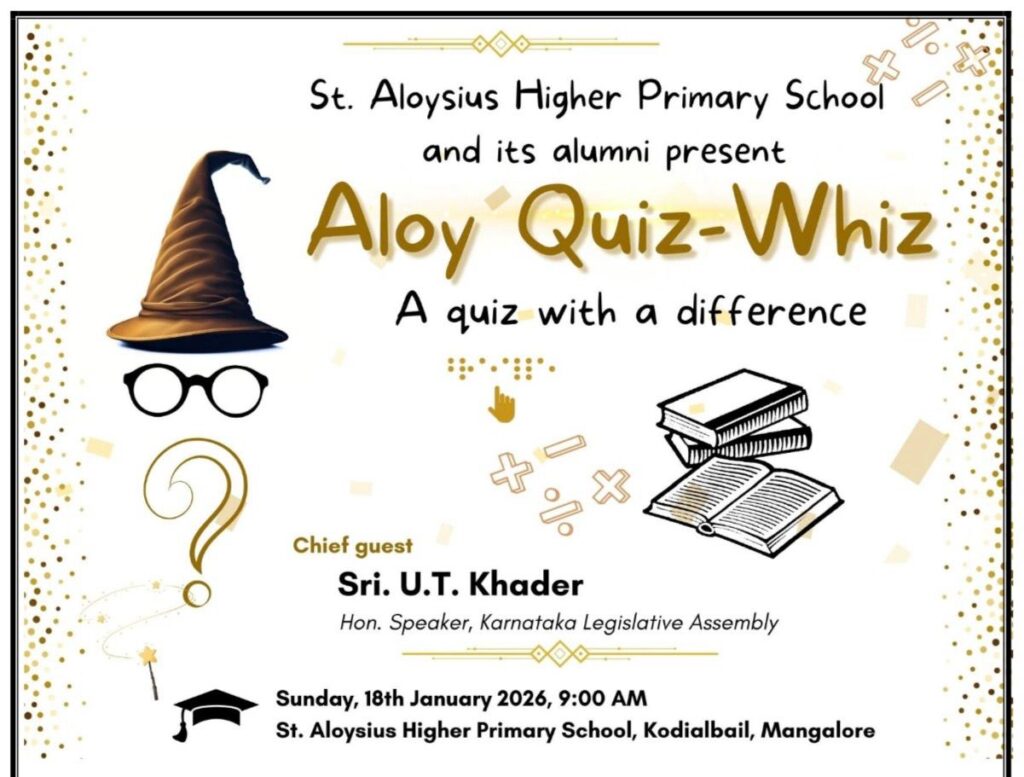 St. Aloysius Higher Primary School and its Alumni Association, which is a constituent of the St. Aloysius College Alumni Association (SACAA), Mangalore, are proud to present “Aloy Quiz-Whiz 2026,” an innovative and inclusive quizzing event for students. Scheduled for Sunday, 18th January 2026, from 9:00 AM to 1:00 PM at the school premises in Kodialbail, Mangalore.