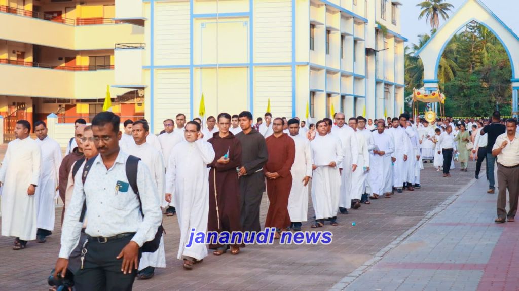 The solemn Eucharistic Holy Mass for the annual procession will be offered by the Bishop of the Udupi Diocese, Most Rev. Dr. Gerald Isaac Lobo. After the Mass, the Blessed Sacrament, placed reverently on a specially decorated vehicle, will be taken in a devotional procession through the city, allowing the faithful to offer public honour and veneration to the Holy Eucharist.