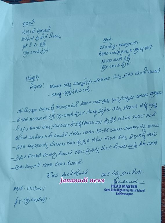 ಶ್ರೀನಿವಾಸಪುರ: ಪಟ್ಟಣದ ಚಿಂತಾಮಣಿ ರಸ್ತೆಯಲ್ಲಿರುವ ಸರ್ಕಾರಿ ಉರ್ದು ಹಾಗೂ ಆಂಗ್ಲ ಮಾಧ್ಯಮ ಬಾಲಕಿಯರ ಹಿರಿಯ ಪ್ರಾಥಮಿಕ ಶಾಲೆಯಲ್ಲಿ ಶಿಕ್ಷಕರ ಹಾಜರಾತಿಗೆ ಸಂಬಂಧಿಸಿದಂತೆ ಗಂಭೀರ ಗೊಂದಲ ಬೆಳಕಿಗೆ ಬಂದಿದ್ದು, ತಾಲ್ಲೂಕಿನ ಕ್ಷೇತ್ರ ಶಿಕ್ಷಣಾಧಿಕಾರಿಗಳ ವರ್ತನೆ ಕುರಿತು ಸಾರ್ವಜನಿಕ ವಲಯದಲ್ಲಿ ತೀವ್ರ ಅನುಮಾನಗಳು ವ್ಯಕ್ತವಾಗಿವೆ.