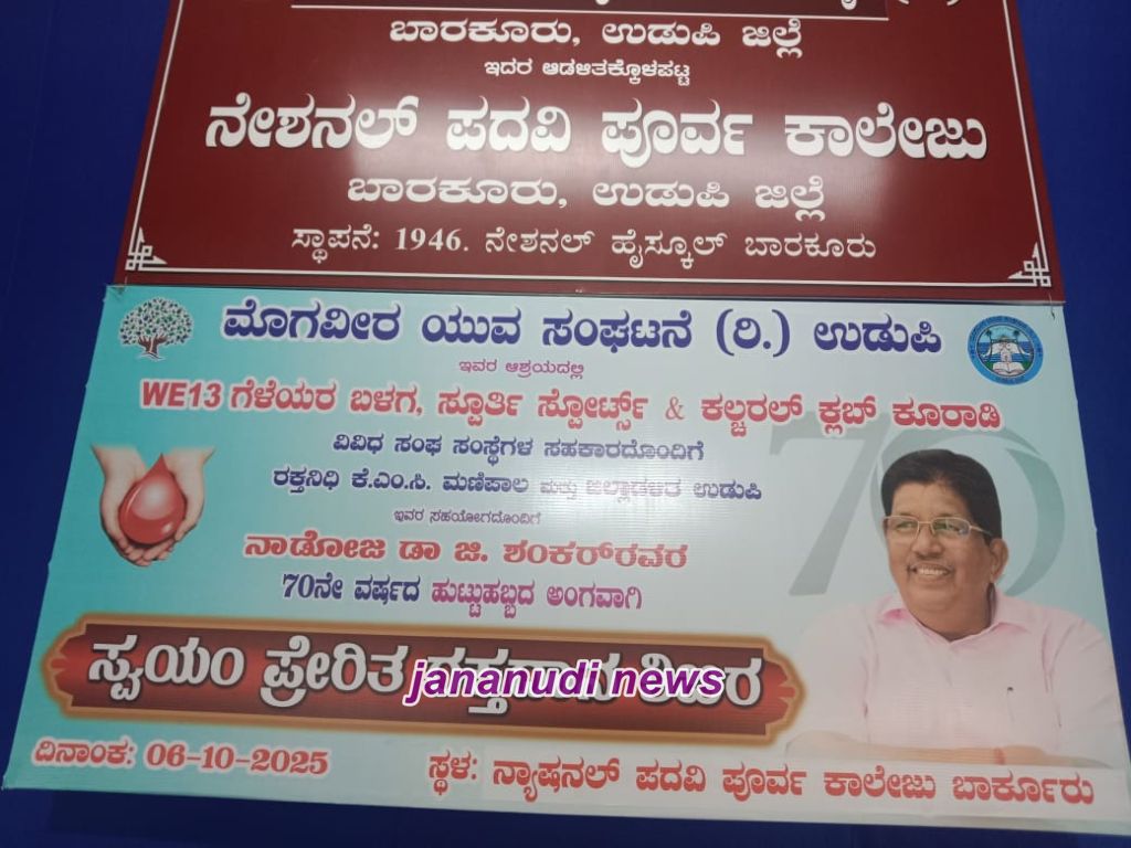 ಸೇವೆ ಮತ್ತು ಕೃತಜ್ಞತೆಯ ಅರ್ಥಪೂರ್ಣ ಕಾರ್ಯವಾಗಿ ಅಕ್ಟೋಬರ್ 6, 2025 ರ ಸೋಮವಾರದಂದು ಬಾರ್ಕೂರಿನ ರಾಷ್ಟ್ರೀಯ ಪಿಯು ಕಾಲೇಜಿನಲ್ಲಿ ಉದಾತ್ತ ಮತ್ತು ಸ್ಪೂರ್ತಿದಾಯಕ ಸ್ವಯಂಪ್ರೇರಿತ ರಕ್ತದಾನ ಶಿಬಿರವನ್ನು ಆಯೋಜಿಸಲಾಗಿತ್ತು.